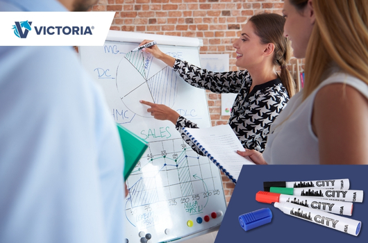 A VICTORIA népszerű City tábla- és flipchart markerei ismét megtalálhatóak kínálatunkban! Ez a klasszikus irodai marker sokak kedvence megbízhatósága, élénk színei és kiváló ár-érték aránya miatt – most pedig újra elérhető!