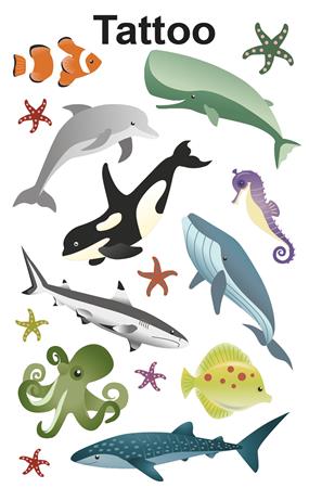 Egy hal, két hal, három hal... vagy inkább egy tengericsikó? Itt minden kis horgász megtalálja a kedvencét! Válaszd ki a kedvenc tengeri mintás tetoválásod! Lepje meg gyermekeit fantasztikus tetoválásokkal, amelyek tökéletesek ajándékként, jutalomként, születésnapi partikhoz vagy egyszerűen csak játékként.