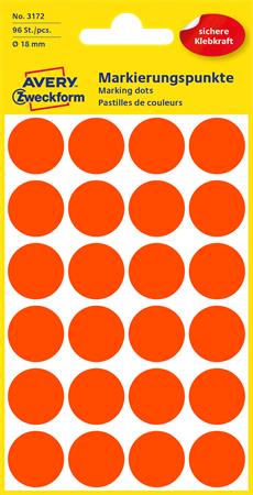 Etikett, 18 mm, kör, AVERY ZWECKFORM, neon piros, 96 etikett/csomag
