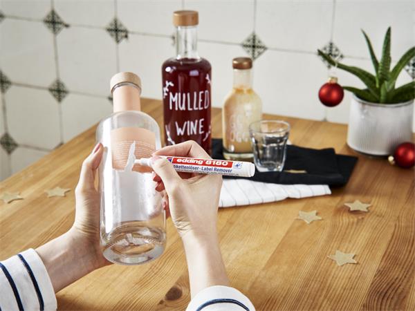-Hagyja néhány percig hatni, majd egyszerűen távolítsa el a címkét és a ragasztómaradványokat.