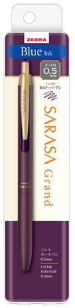 Zseléstoll, 0,33 mm, nyomógombos, padlizsánlila tolltest, ZEBRA "Sarasa Grand", kék