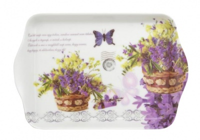 Tálca, műanyag, szögletes, levendula mintás, 21x14cm